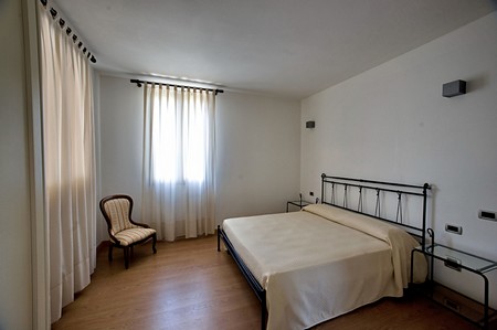 L’alloggio Vivaldi è un appartamento di 72 mq, che offre quattro posti letto. Il salone d’ingresso, assai luminoso grazie ad una suggestiva apertura ad arco con vista sul porticato, comprende un confortevole salotto ed un’accogliente cucina. Il reparto notte include un’elegante camera matrimoniale, una piccola stanza con un divano letto a due posti ed un bagno.